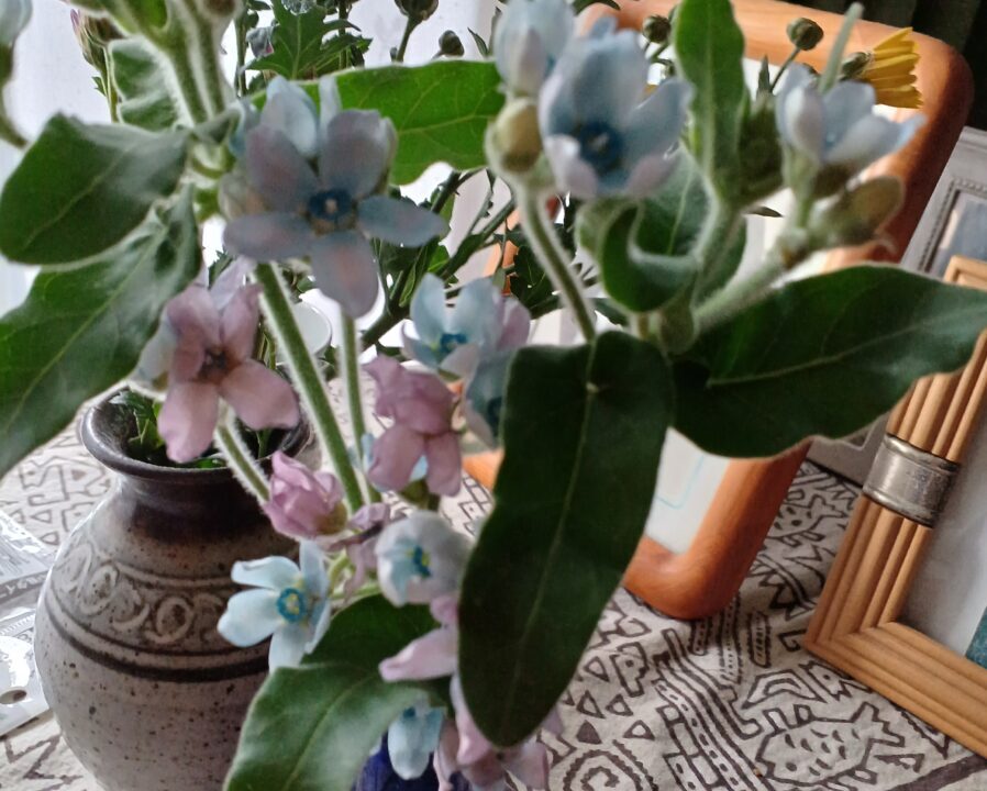 私はそのバケツの中から、青い小花を買ってきました