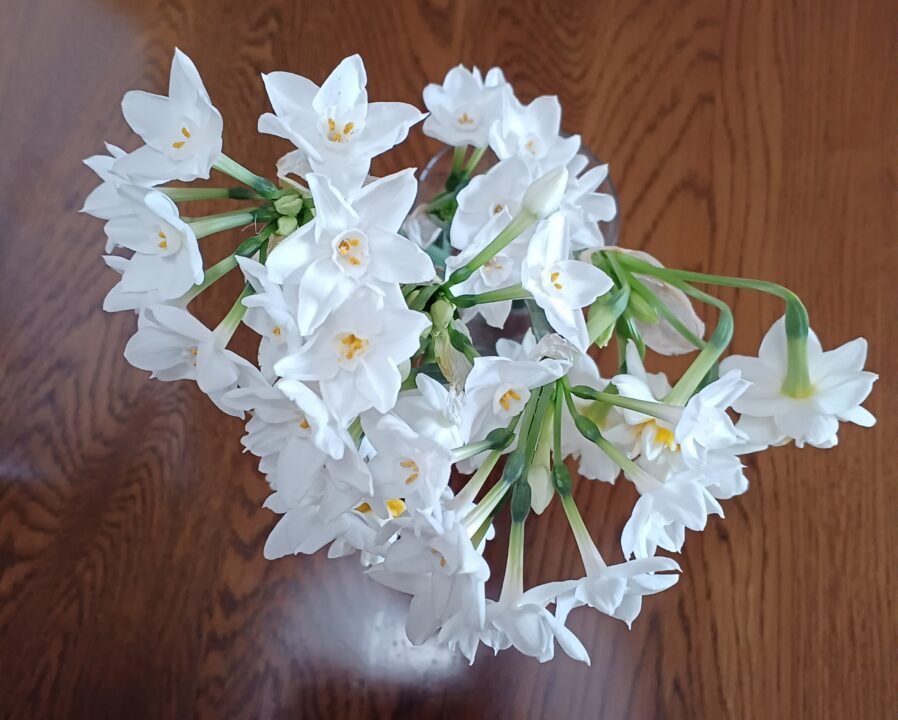 ありがたくいただいてきた「水仙」は遺影の前で、香っています。